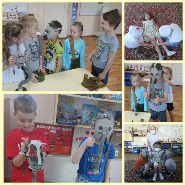В рамках месячника по ГО ЧС в подготовительной группе прошло мероприятие по гражданской обороне " Сумей себя защитить и оказать помощь". Воспитанники учились надевать противогазы и респираторы как средство индивидуальной защиты. Свои знания они закрепили через сюжетно- ролевую игру "Юные спасатели".