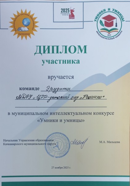 27 ноября ребята приняли участие в городском интеллектуальном конкурсе "Умники и Умницы" среди воспитанников дошкольных организаций. Детям были предложены задания с математическим, логическим и художественным содержанием, где дети смогли проявить интеллектуальные способности, умение точно следовать инструкции, инициативу, смекалку и взаимопомощь.